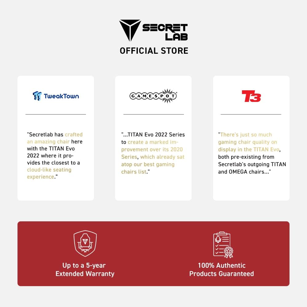 AWARD WINNING TRUSTED BRAND – With over 3,000,000 users worldwide, more than 50 “Editor’s Choice” awards and trusted by global Esports champions, we strive to provide you with the best seating experience. We also offer a 5-year extended warranty for extra peace of mind.